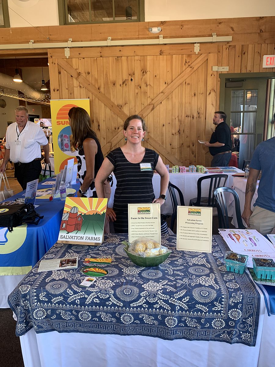 Salvation Farms attended the School Nutrition Association of Vermont’s (SNA-VT) Food Show at Sugarbush Resort in August. The SNA-VT is an organization led by child nutrition professionals and its mission is education and advocacy for healthy school meals. Behind the scenes during setup, the vendor area was a hive of action with businesses arranging their displays and making introductions. National and local businesses shared their offerings, from wholegrain breakfast waffles to meatless deli slices, cafeteria-friendly food was displayed from wall-to-wall.
